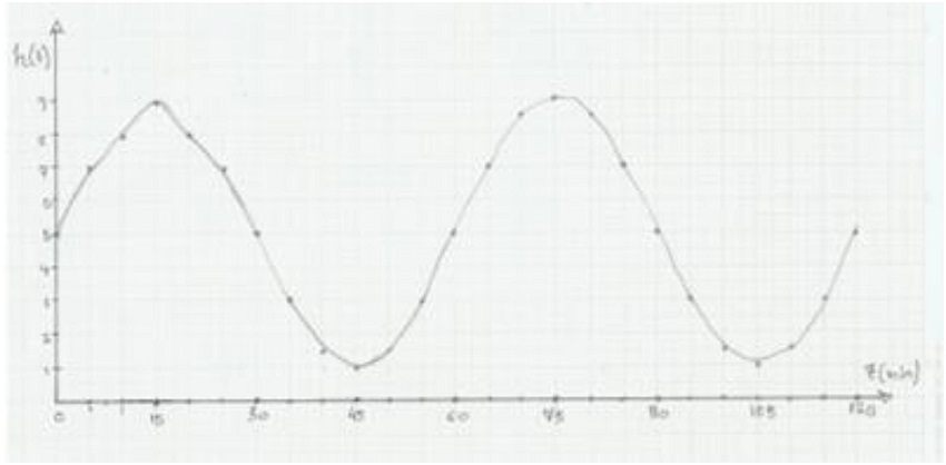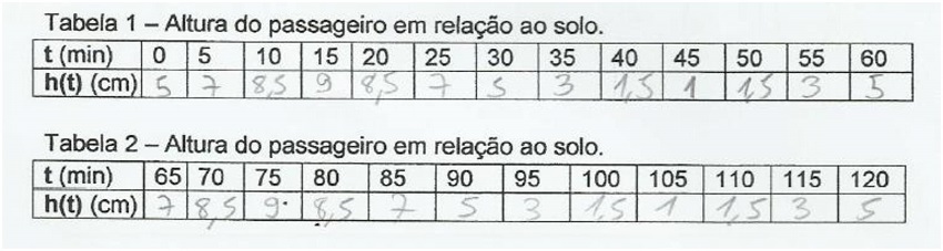 Informamos que essa roda demora uma hora para dar uma volta completa, e a tarefa dos alunos consiste em preencher uma tabela com a altura do passageiro a cada cinco minutos e, com os dados dessa tabela, construir um gráfico.