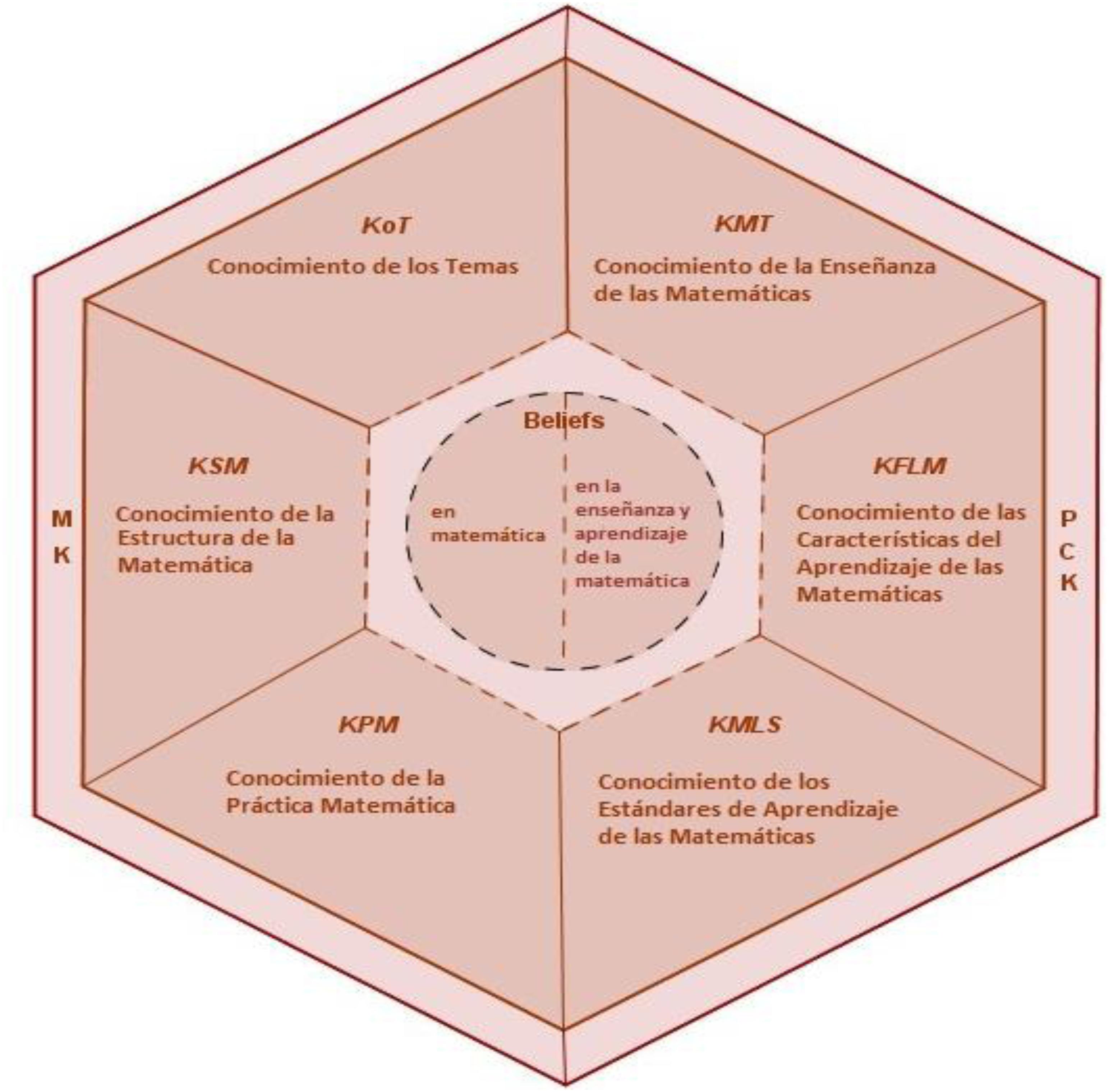Los tres subdominios anteriores, entendidos en su conjunto (con una visión holística del conocimiento matemático del profesor), dan una visión completa del conocimiento matemático del profesor, abarcando aquellos temas concretos abordados en el aula, desde una perspectiva de profundización en el tema (KoT), la interrelación de unos temas con otros, dando sentido a un cuerpo matemático sin partes aisladas (KSM), y las reglas de articulación de la actividad matemática (KPM)