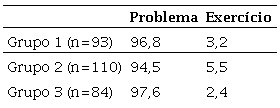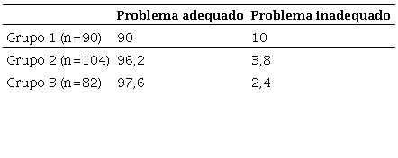 Diferenças significativas entre os grupos não foram identificadas, uma vez que em todos eles os problemas eram, em sua maioria, adequados.