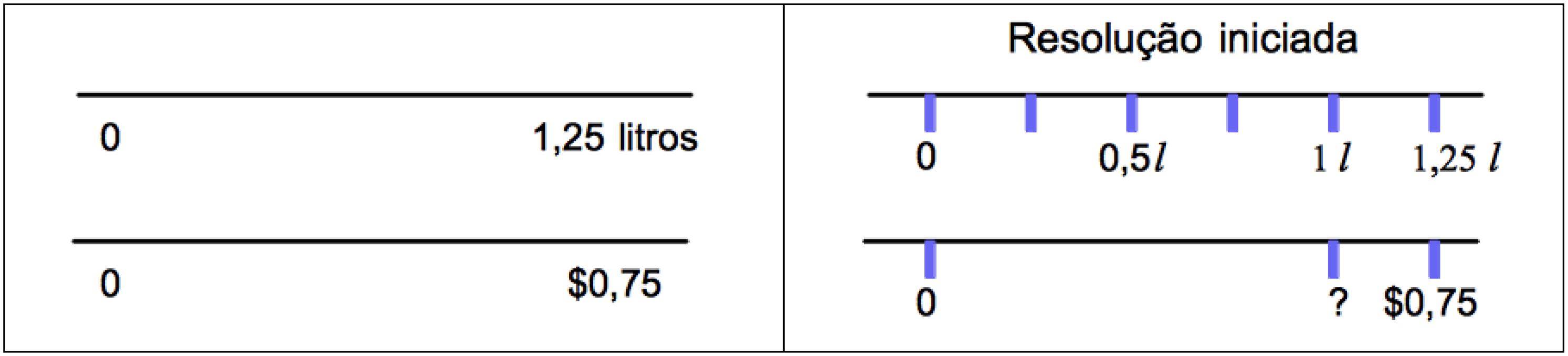 Orril e Brown (2012) desenvolveram uma estratégia chamada Dobro do Número de Linhas (Double Number Line – DNL), que contribui para a compreensão das relações proporcionais existentes entre quantidades de naturezas diferentes, a taxa. Para ilustrar tal estratégia, citaremos um dos exemplos utilizados pelos autores, conforme mostra a Figura 1.