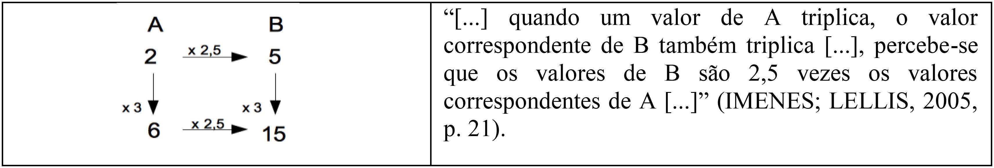 Para Imenes e Lellis (2005), a essência da proporcionalidade está nas relações multiplicativas, caracterizada por: