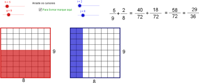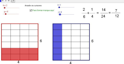 Além disso, assim como argumentam esses autores, outros problemas acabam emergindo com o uso da tecnologia. Nesse caso, com o uso do Geogebra, um problema inicial que tinha o propósito de que eles manuseassem a construção já pronta observando se a abordagem geométrica era propícia para a compreensão visual da soma de frações, acabou se tornando um problema desafiador, cujo propósito era o aprimoramento do algoritmo da adição de frações.