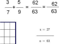 No curso que ocorreu em Coimbra, as professoras Gisele e Raquel tentaram entender a lógica utilizada ao apresentarem os retângulos e os números em suas laterais, conforme ilustrado na Figura 2. Além disso, argumentaram que não consideraram viável o fato de o algoritmo utilizado nessa adição não envolver o cálculo do mínimo múltiplo comum (MMC) dos denominadores, uma vez que esse é o método usual pelo qual os alunos aprendem a adicionar e subtrair frações a partir do 5° ano: “não sei como é que eu faço para fazer isso [inserir o MMC ao invés do produto dos denominadores]”, disse Gisele (Videogravação, 2016).