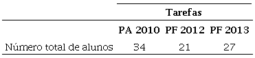 A recolha de dados foi feita em contexto escolar, baseando-se: (i) na recolha documental (tarefas das provas de aferição5 de 2010 e das provas finais6 do 2° ciclo de 2012 e 2013 e resoluções dessas tarefas pelos alunos participantes); e (ii) em entrevistas semiestruturadas a alunos, registradas em vídeo. O número de entrevistas realizadas encontra-se registado na tabela seguinte.