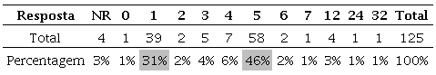 Dos 125 alunos que a realizaram a tarefa, 46% responderam acertadamente.