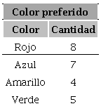A cada uno de los estudiantes de un curso se le preguntó por su color favorito. Las respuestas de cada uno de ellos fueron organizadas en la siguiente tabla: