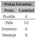 A los estudiantes se les preguntó sobre su fruta preferida. Los resultados se organizaron en la siguiente tabla.