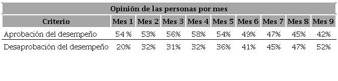 ¿Cuánto ha variado la aprobación durante los nueve meses indicados en la tabla?