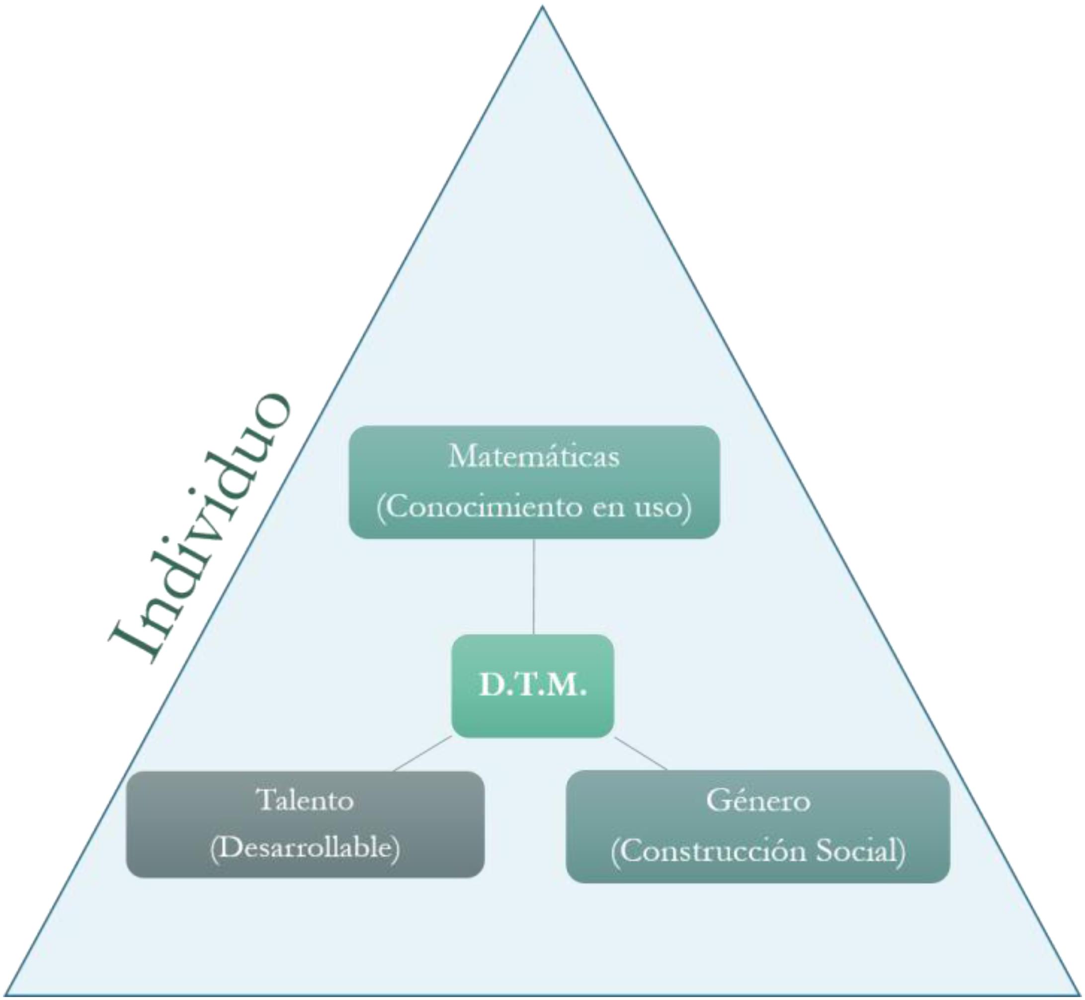 Por lo tanto, considerar al individuo en el análisis de toda relación existente entre Matemáticas, Talento y Género (Mujeres) y su relación en el desarrollo del talento, es una facultad característica de la visión Socioepistemológica.
