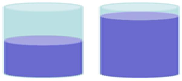 Nesse âmbito, o movimento pertinente ao desenvolvimento do pensamento conceitual de adição e subtração, em sua tarefa introdutória (Figura 1), traz um componente conceitual que preanuncia a relação essencial todo-partes. Sobre uma mesa da sala de aula, estão dois recipientes iguais, com volumes de líquido diferentes (Interpretação nossa, a partir da tradução de Elvira Kim, de GORBOV, MIKULINA, SAVIELIEV, 2008).