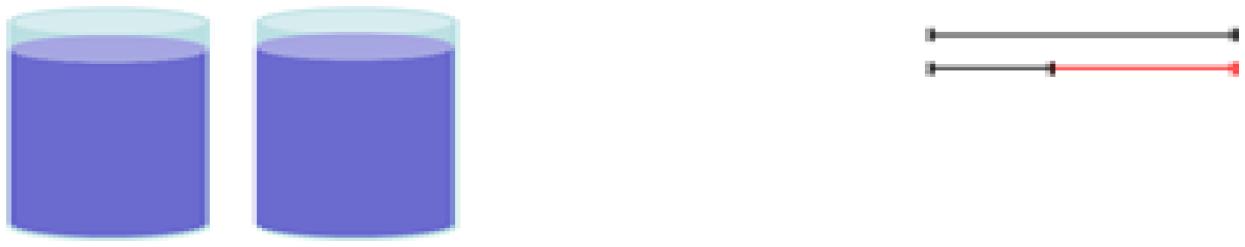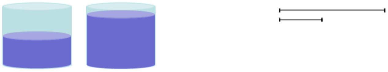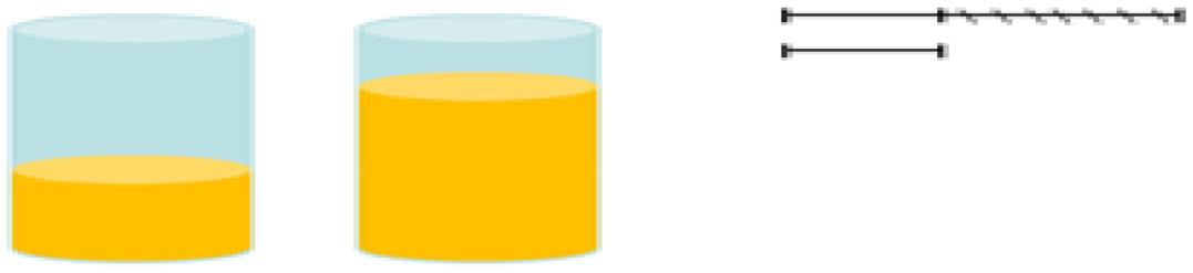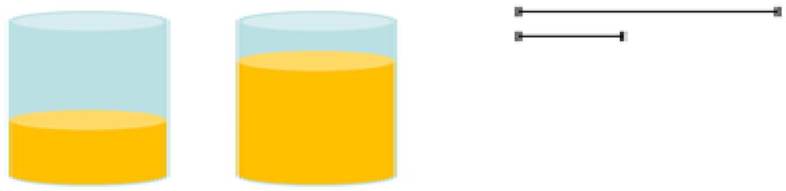 A segunda tarefa é semelhante à anterior, pois são colocados diante dos estudantes dois recipientes de formatos iguais e com volumes de líquidos diferentes. Dessa vez, a condição estabelecida é igualar o volume de líquido maior com o de volume menor, com o objetivo de representá-los por meio de segmentos de reta (Interpretação nossa, a partir da tradução de Elvira Kim, de GORBOV, MIKULINA e SAVIELIEV, 2008).