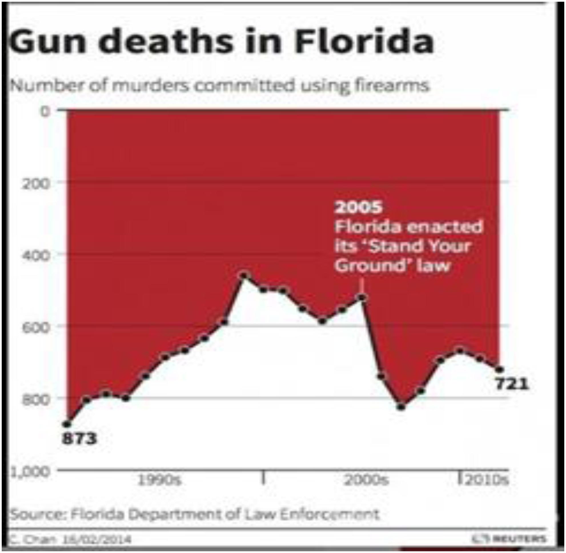 Atraindo a atenção do leitor, essa cor vermelha também parece ajudar muito nessa ilusão, além de evidenciar ainda mais a aparentemente “diminuição” nas mortes por arma de fogo na Flórida (David, 2018).