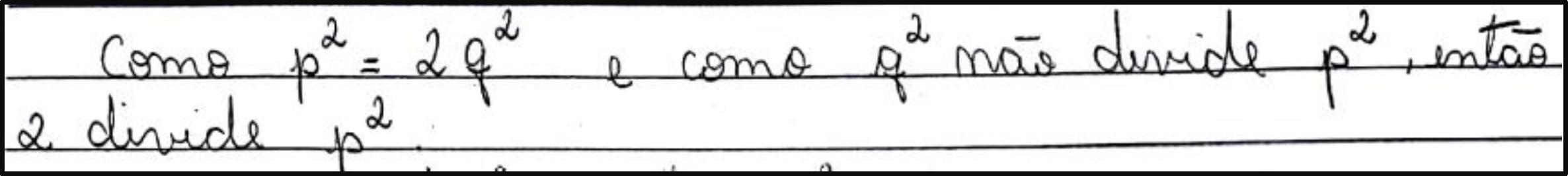 iii) O sujeito B apresentou erro em argumentação básica, envolvendo a definição de divisibilidade (Figura 3). A igualdade p2 = 2q2 já garante que p2 é um número par, independentemente de qualquer condição sobre os inteiros p e q. Esse erro foi cometido duas vezes em sua resolução.