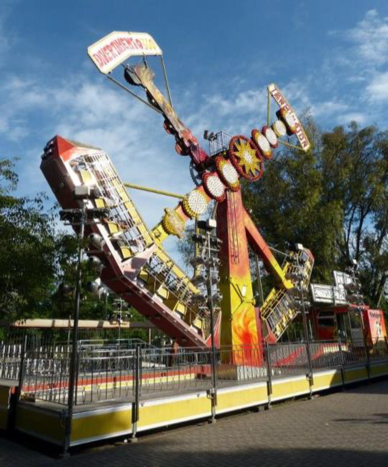 En esteapartado se describen, de manera densa, las decisiones del grupo Los Einsteins que conformaron una comunidad local de práctica que llevó adelante un experimento particular. Este grupo explicó que para decidir acerca del tema que estudiarían, se inspiraron en un juego mecánico, que denominaban el martillo, y que se encontraba en un parque de diversiones de la ciudad. En la Figura 1 puede verse una imagen de este juego. Inspirados por su funcionamiento, los estudiantes decidieron hacer un experimento para estudiar el movimiento oscilatorio de diferentes cuerpos suspendidos de un hilo sostenido por uno de sus extremos a un punto fijo. Los estudiantes determinaron variables dependientes e independientes y formularon hipótesis que pueden verse en el Cuadro 1. En sus propias palabras plantearon: queremos ver si soltando pelotitas de diferentes pesos desde distintas alturas, sujetos por un punto fijo, llegan a completar una vuelta o ver la altura máxima que llegan. Para ello, construyeron un dispositivo que puede verse en la Figura 2. El mismoconsiste de dos soportes verticales y paralelos, apoyados sobre una base plana, que sostienen una varilla en posición horizontal de la cual pende un hilo con una pelotita en el extremo inferior. La longitud del hilo es de 26,5 cm. Este dispositivo pendular tiene adosada una circunferencia graduada de 0° a 360°, hecha en papel, que permite medir desde qué ángulo se suelta la pelotita.