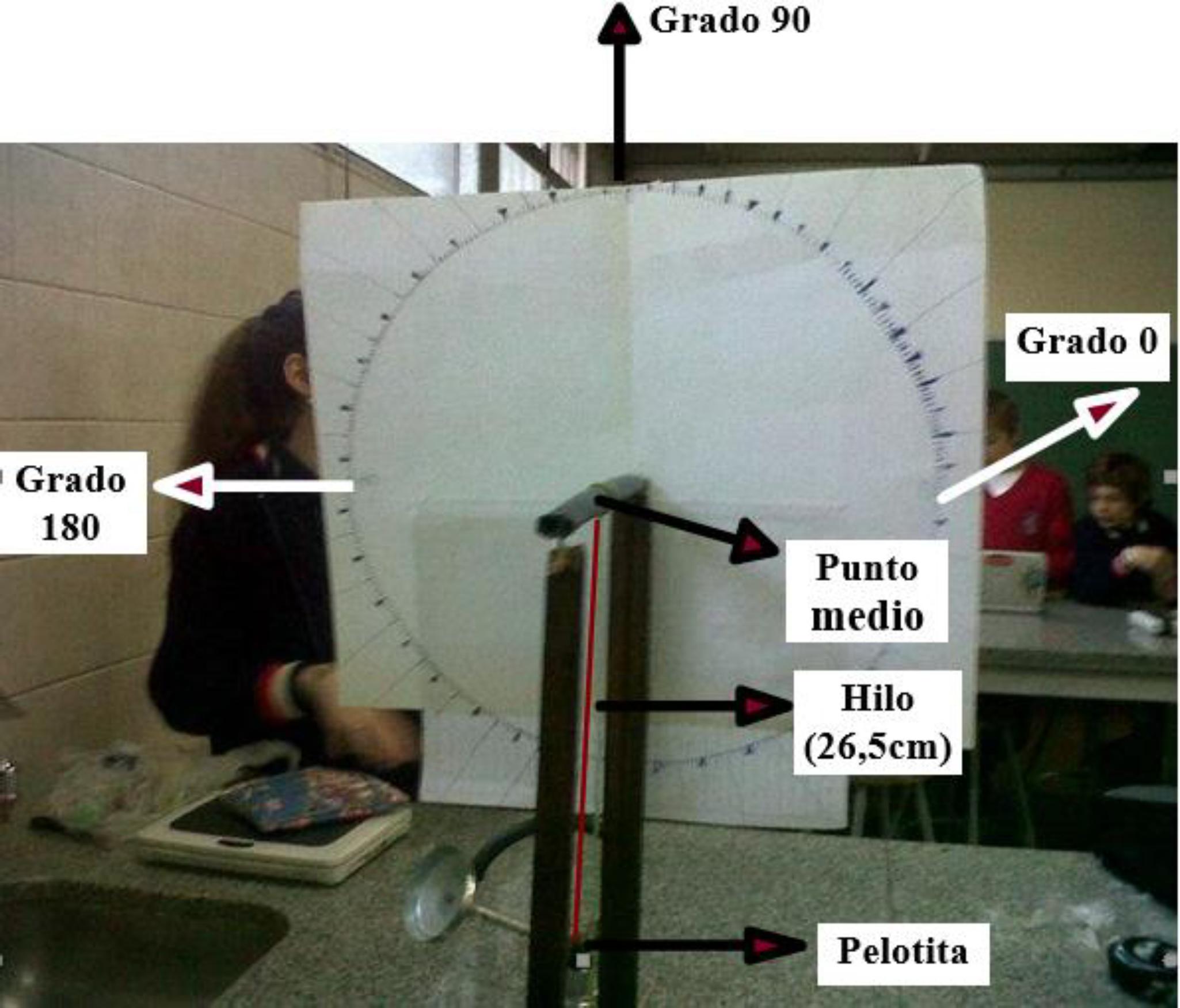Según las expresiones de los estudiantes durante una exposición sobre el estado de avance de su proyecto, la construcción de este dispositivo implicó distintas dificultades a sortear: ¿cómo suspender las pelotitas al final del hilo y mantener la misma longitud?, ¿qué usar, un hilo o un alambre rígido?, si se usa un hilo, ¿cómo lograr que no se doble en cada tirada?, ¿qué implemento se podría agregar al dispositivo para luego medir alturas?, ¿cómo adosar la circunferencia graduada para que quede perpendicular a la base?