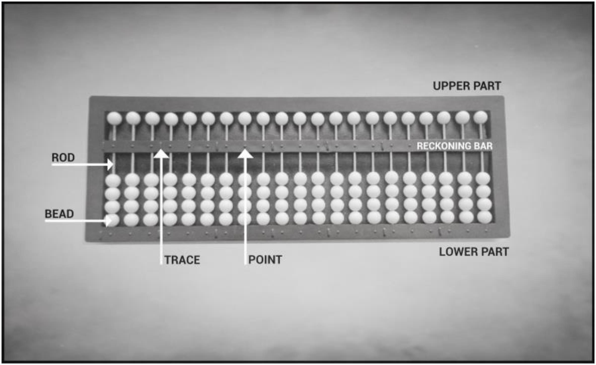 Teaching the use of the soroban began with an explanation of its structure and the way one can go about recording numbers and performing operations of addition and subtraction of these recorded numbers. It has a rectangular in shape and a reckoning bar dividing the soroban into two parts: the upper one and the lower area. Rods are arranged vertically along the soroban, and the number of rods varies from one soroban to another. Each rod consists of four lower beads and five upper beads. The reckoning bar is marked with lines which divide the rods into classes. They have the function of a dot for operations including decimals, and the function of a line/slash for fractions. Figure 1 illustrates the tool structure: