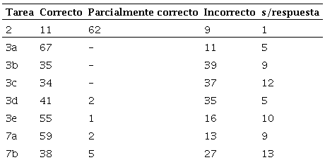 Los hallazgos muestran que una mayoría de estudiantes tiene un repertorio limitado de procedimientos para resolver tareas que responden a contextos geométricos. Por el contrario, en contextos numéricos donde la fórmula puede ser aplicada de manera directa responden, en su mayoría, únicamente con uso de cálculos dejando de lado procedimientos de naturaleza geométrica que podrían simplificar la resolución de las tareas. La Tabla 1 muestra que las tareas 3 y 7 presentan el mayor número de resoluciones correctas en aquellos casos donde la fórmula podía utilizarse directamente. Sin embargo, cuando se pregunta por relaciones entre áreas de figuras (3b, 3c y 3d) el número de respuestas correctas disminuye. Así mismo, sucede cuando deben emplear más de un procedimiento para encontrar áreas (7b).