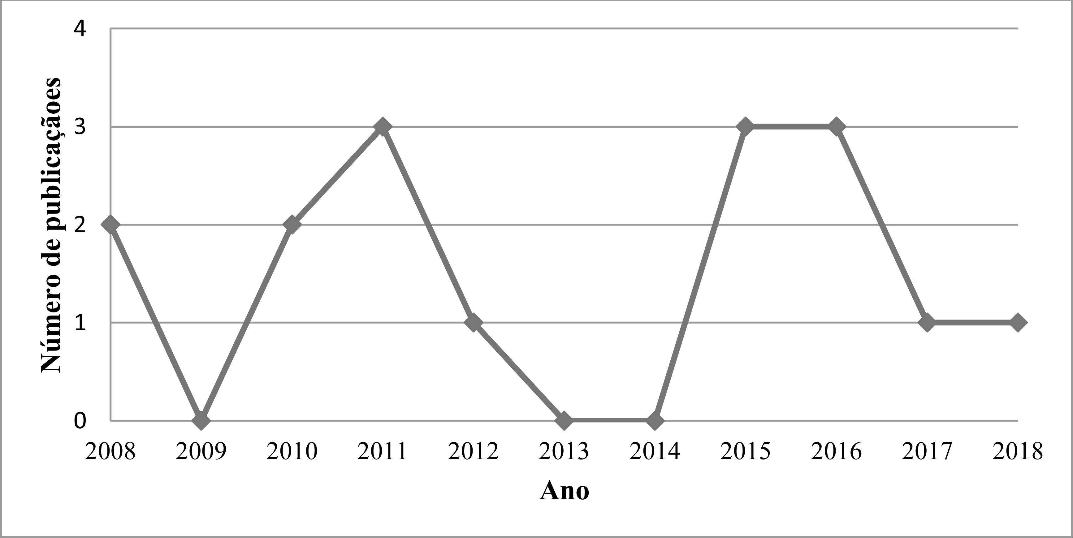 No que diz respeito ao ano de publicação, os artigos encontrados foram publicados a partir de 2008. Conforme consta no Gráfico 1, os anos de 2011, 2015 e 2016 destacam-se pelo maior número de artigos, enquanto 2009, 2013 e 2014 se sobressaem pelo fato de não haver, nesses anos, trabalhos publicados sobre o tema em sintonia com os critérios de investigação.