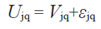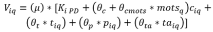 (1)Donde, Vjq corresponde a la utilidad sistemática o determinística (representa la parte medible de la función de utilidad), que a su vez está compuesta por un conjunto de atributos X que representan el nivel de servicio y características de la alternativa j para el individuo q; por otra parte, εjq refleja el comportamiento y gustos individuales de los individuos; este término asume todos aquellos aspecto no tenidos en cuenta y cualquier error de medición que haya cometido el modelador (Manski, 1977). De esta forma, la parte sistemática (o determinística) de la utilidad individual a menudo se supone como una función aditiva lineal en los atributos, como se describe en la Ec. 2: