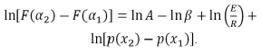 With a defined F (α) function and taking logarithms Eqs. 5 and 9 become