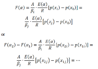 Kinetic parameters can be found with isoconversional and non-isoconversional methods using S r minimization with integration, i.e. using Eq. 15 or Eq. 16. The Vyazovkin-Dollimore method is a different isoconversional approach for E ( α ) calculation (Vyazovkin, 1997; Vyazovkin, 2001). It is based on the equality of the right sides of Eq. 5 or Eq. 9 at different β values in the forms