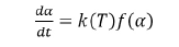 (1)where w 0 and w ∞ are the measurements at the beginning and the end of the analysis, respectively. In the kinetic models used in thermal analysis the variation in time of α is commonly represented as the product of a temperature-dependent rate constant k , and a kinetic function f (Blaine & Kissinger, 2012).