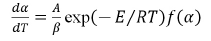(2)Including a constant heating rate, β=dT⁄dt, and the Arrhenius equation (Arrhenius, 1889)