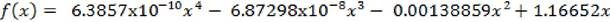 With the data observed in point 2 the interpolation process is carried out, obtaining the continuous function (equation 2), which is represented in Figure 1.
