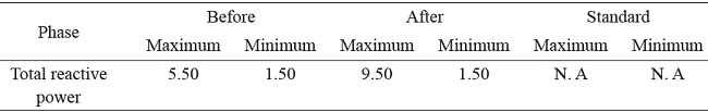 As shown in Table 12, the total reactive power increased in 42 % regarding the previous measures; the maximum record occurred during the operation of the experimental PV solar system.
