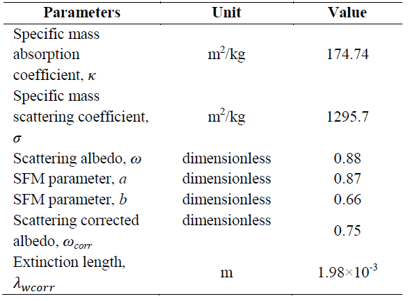 The most important optical parameter considered in the SFM is scattering albedo (ω) of the TiO2 suspension. This parameter depends on the wavelength of the energy spectrum and it has been reported for several types of TiO2 catalysts, including P-25 used in this study.