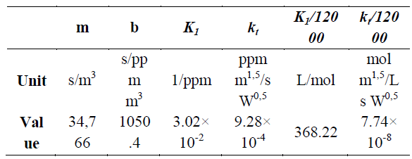 Solar radiation parameters were taken from previous studies carried out under the same irradiation conditions and in the same reactor geometry.