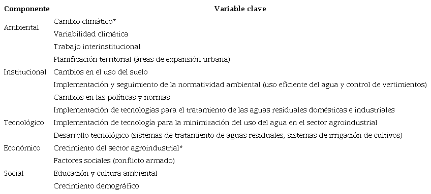 Así mismo, las variables claves para alcanzar la visión fueron identificadas y clasificadas en 5 componentes principales: ambiental, institucional, tecnológico, económico y social (Tabla 2).