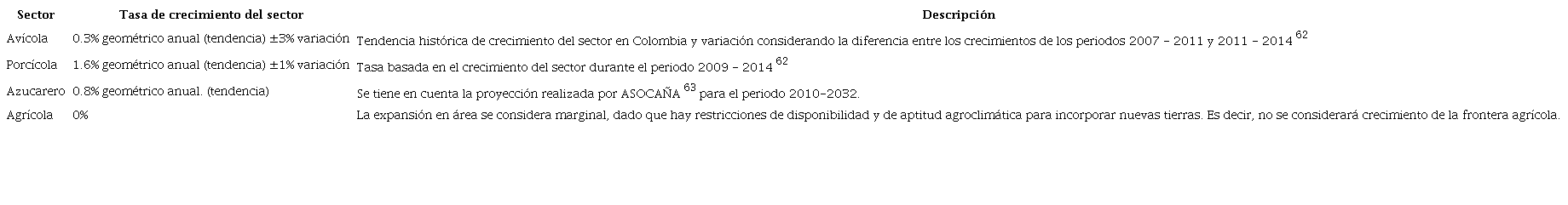 En el sector agroindustrial, la proyección de las cargas vertidas en los ríos Bolo y Frayle, se estimó asumiendo que la contaminación aumenta de manera proporcional al crecimiento de la producción anual, para el periodo de proyección. Para los Sectores Porcícola y Avícola, se estimaron las tasas de crecimiento teniendo en cuenta: la tendencia histórica de crecimiento del sector y su variación porcentual, según el Censo Pecuario Nacional 62. Para el sector azucarero se consideraron las proyecciones de crecimiento realizadas por ASOCAÑA 63.