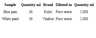 Two samples of wastewater of different brands and colors were analyzed, the first one in blue and the second one in white color. A volume of 30 ml was taken from each paint and diluted in 2,000 ml of drinking water, as shown in Table 1.