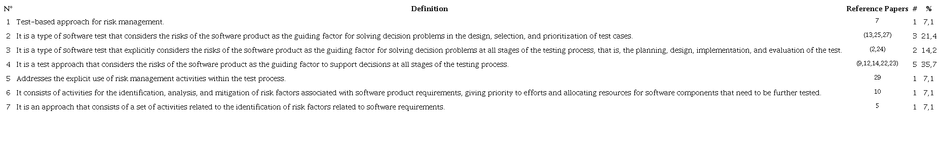 In the systematic review of the 23 papers that were studied, it can be noticed that only 66.7% of the analyzed studies use a common or unique definition for the term “risk-based tests”. The definitions replacing the term RBT according to the paper reference, quantity, and percentage of these studies are shown in Table 6.