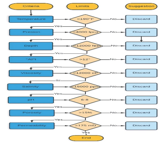 In conclusion, Tcal < tα because, -3.94 < -1.8331, Ho is rejected and at a significance level of 0.05 it is shown that µd< 0, therefore, is considered favorable, because there were decreases in water cuts once the microbial treatment was implemented. Figure 2 represents the substantially vital reservoir parameters for the microorganisms to be implemented in the Campo Pilon of the Morichal District. Constructed based on investigations of various sources including Institute for Reservoir Studies (IRS), United States Department of Energy (DOE) and National Petroleum Company of China (CNPC) 4.