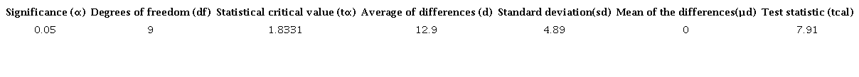 From this, the test statistic (t calculated) was calculated by Eq. 2: