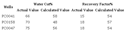 Based on the correlation obtained in the point to estimate both the recovery factor and the percentage of water cut (Eq. 5 and 6) and in relation to what is indicated in the flow chart that represents the criteria for the application of the microbial technique (Figure 2), it is demonstrated in Table 8 the application of these correlations with the data concerning the wells under study, they are PC0041, PC0158, PC0047.