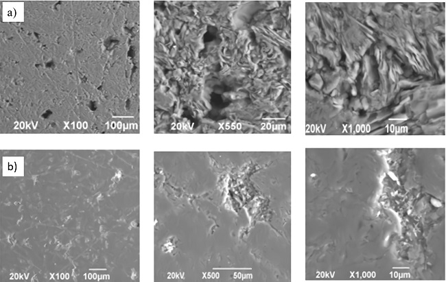 La morfologia de las placas de HOPG de muestra base y otras muestras tratadas por spray coating con acidos fuertes se muestran en la Figura 2. La Figura 2a muestra una superficiecie porosa y una microestructura formada por laminillas de 100% de carbono. En la Figura 2b se observa una cavidad superficial atacada por la pulverizacion de los acidos fuertes. En los bordes se encuentran capas delgadas de GO.