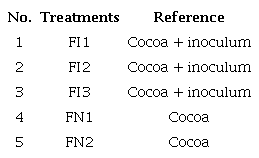 pH of the treatments of the cocoa beans fermented with the inoculum (FI1; FI2; FI3) and with natural fermentation (FN1; FN2) (Table 3), ranged between 5.0 and 5.2, where it is evident that there was no significant change between them; but it could not give results similar to those reported by 21, finding pH values of 5.84.