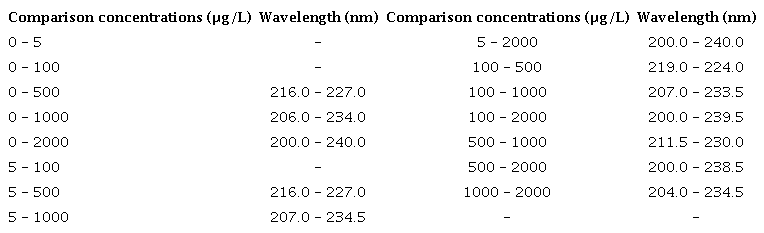 In general, disinfection by-products are better correlated at 272 nm 21, and the absorbance measured at 254 nm (UV254) normally is associated with the presence of natural organic matter (NOM), such as humic and fulvic acids 22,23, and it is widely monitored as indicator in water and wastewater. According to Altmann et al. 24, UV254 is an indicator which has also been evaluate as real-time to monitoring and controlling the organic micropollutants removal in wastewater treatment, showing its applicability as control parameter; pollutants in stormwater are quantified at 225 - 230 nm 19, and Atrazine at 223 nm 15,25.