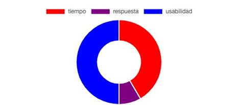 Por otra parte, con el objetivo de evidenciar la pertinencia de la herramienta de acuerdo con la Figura 6, el 75% de los encuestados indicó que el tiempo de respuesta es bueno o muy bueno, el 57% de los encuestados expresó que las respuestas del chatbot eran claras y que en un 70% las respuestas eran útiles o realmente suplían la necesidad de información. Mientras que el 37.5% indicó que la herramienta era fácil de usar y el 31.25% indicó que la herramienta era rápida en responder las preguntas.
