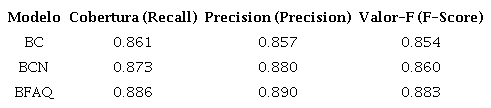 Entre los elementos más importantes de la investigación es la comprensión de los componentes necesarios de NLU y PLN para responder a los requerimientos e información en un escenario de pandemia. Los cuales se encargan de clasificar las intenciones de comunicación del usuario directamente desde el texto. Además, permite encontrar la respuesta más cercana a un requerimiento de información. La compresión del lenguaje natural es considerada como un problema de clasificación múltiple. Para evaluar el desempeño de los modelos en la tarea de clasificación se cuenta con las métricas de precisión, cobertura (recall) y Valor-F (F-Score, por su nombre en inglés). La precisión permite medir el grado de efectividad del modelo, la cobertura o exhaustividad la cual mide la cantidad de ejemplos que el modelo es capaz de identificar correctamente frente al total de ejemplos correctos y el valor-F que es una medida representativa de un bajo número falsos positivos y falsos negativos, lo que significa que el modelo realiza la tarea de clasificación con pocos errores. En la Tabla 4 se presenta el rendimiento de cada uno de los modelos considerados en la investigación, en esta se resalta el rendimiento del modelo BFAQ que en comparación con los otros modelos de referencia logra una mejor valor-F. Es por esta razón que la herramienta prototipo utiliza el modelo BFAQ para responder a las necesidades de información de la ciudad de Cali.