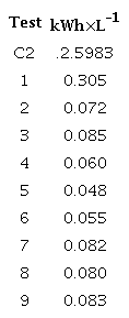 Where P is Power in kW, t is reaction time (h), V is treated volume (L) of the original wastewater and d is percentage of absorption reduction.