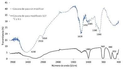3.3. Espectrometría FTIR de la cáscara de yuca modificada y no modificada