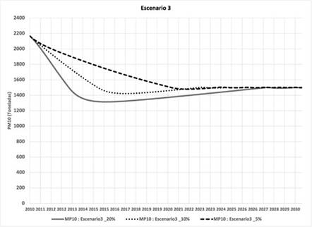 3.3 Escenario 3: Política de PM10 máx. de 1500 Ton/año (Reducción del 25%)