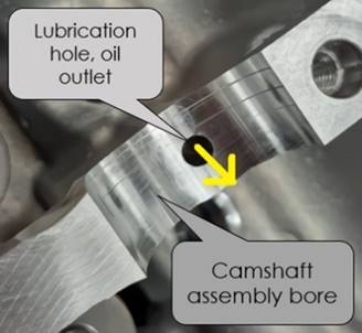 This test point measures the engine oil pressure and the limits programmed for acceptance in the engine cold testing are from 275 to 330 kPa. The assumption that the engine oil pressure is influenced by the condition of the camshaft bores lies in the fact that there are lubrication holes, as illustrated in Figure 6.