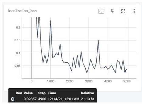 De esta manera se disminuye el nivel de pérdida en la localización de cajas o región delimitada dentro de la imagen de la Figura 12, en donde al tener menos fugas de información que causan ineficiencia a la hora de la localización, se gana una estabilidad periódica sin sobrepasar valores de perdida mayores al 0,15, asegurando que el modelo es capaz de deducir y detectar en tiempo real cada seña o clase.