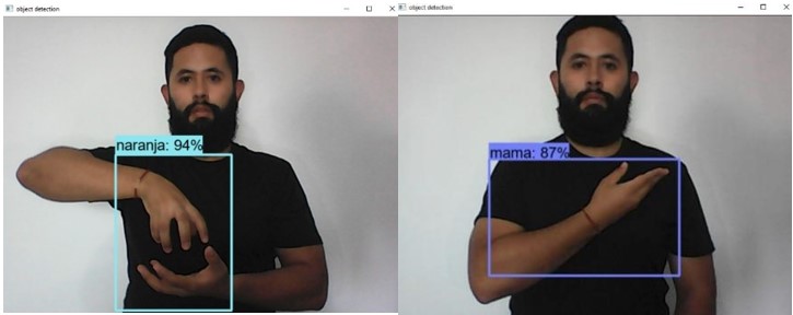En este proyecto se logra determinar que el uso de una red neuronal convolucional, por medio de búsqueda de selección, permite mediante algoritmos de reconocimiento gestual, análisis de patrones y redes neuronales, una eficiente elaboración del modelo deductivo. Mismo que toma como base el modelo SSD MobileNet V23 FPNlite 320x320 de clasificación de imágenes proporcionado por Tensorflow, que ha demostrado brindar una eficiente tasa de detección y un muy bajo error de ubicación de los objetos quién brindó la respectiva supervisión mediante procesos de inferencia para detectar patrones en el LSC entrenando y evaluando 64 palabras, letras y números de manera eficiente en cuanto a su precisión, exhaustividad y pérdida de información.