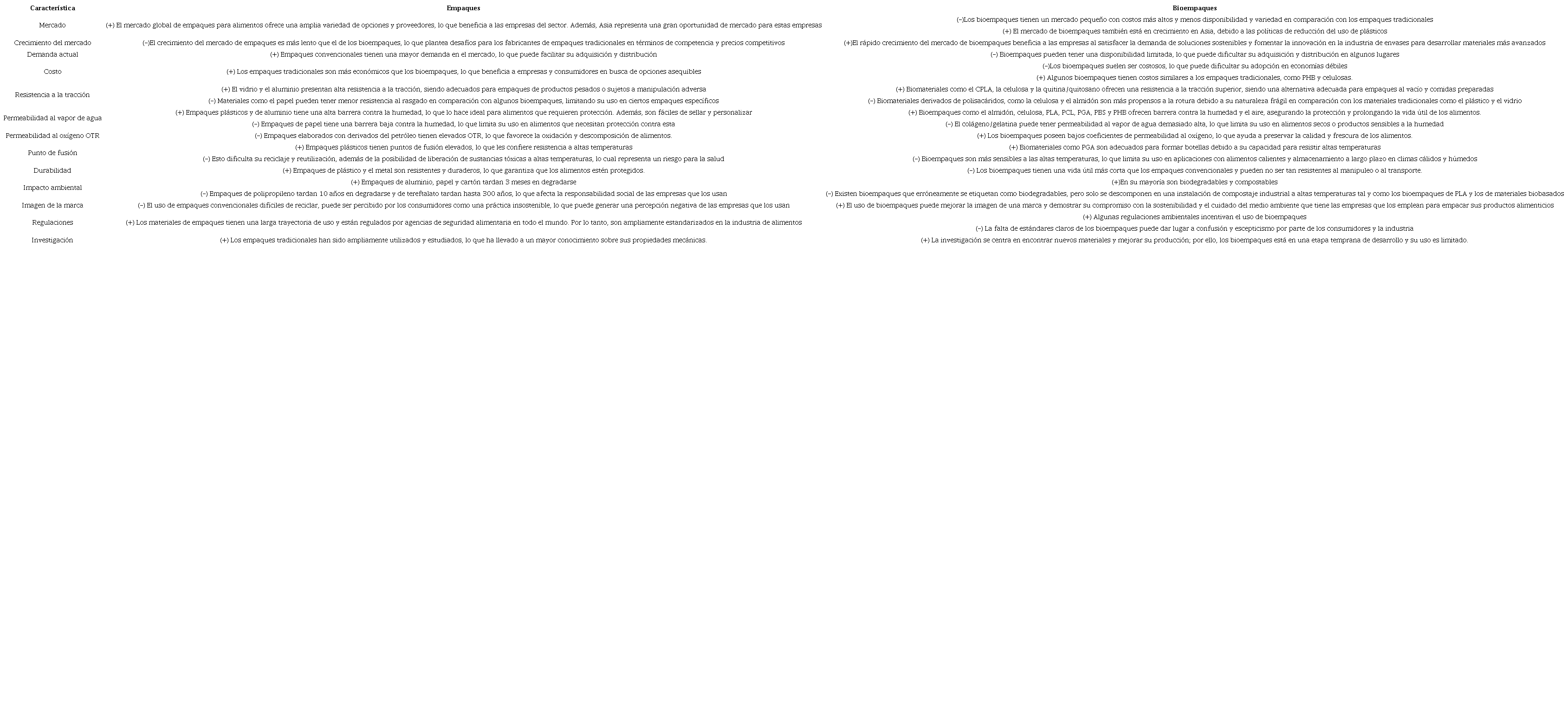 Aunque existen múltiples comparativas entre empaques y bioempaques para alimentos, la mayoría se enfoca en aspectos específicos y no incluyen un análisis completo y sistemático 3. Por lo tanto, surge la necesidad de realizar una comparación detallada y rigurosa que permita identificar las ventajas e inconvenientes de cada tipo de empaque en diferentes situaciones. Además, en la industria del empaque, es esencial contar con información actualizada sobre las tendencias del mercado 4. Por ello, teniendo en cuenta la información proveniente de fichas técnicas encontradas en el mercado global, en el presente artículo se analizan estas características de empaques y bioempaques. Además, se analiza información de bases especializadas examinando aspectos del mercado y de carácter legal.